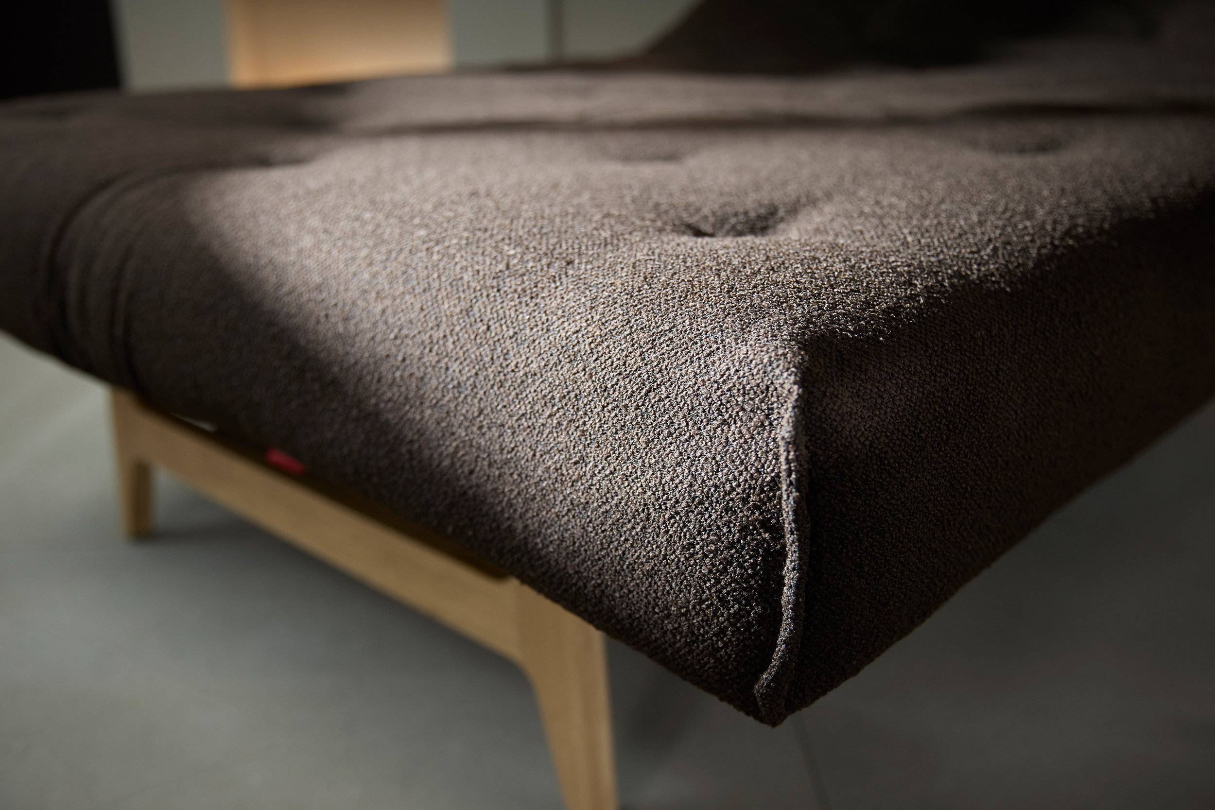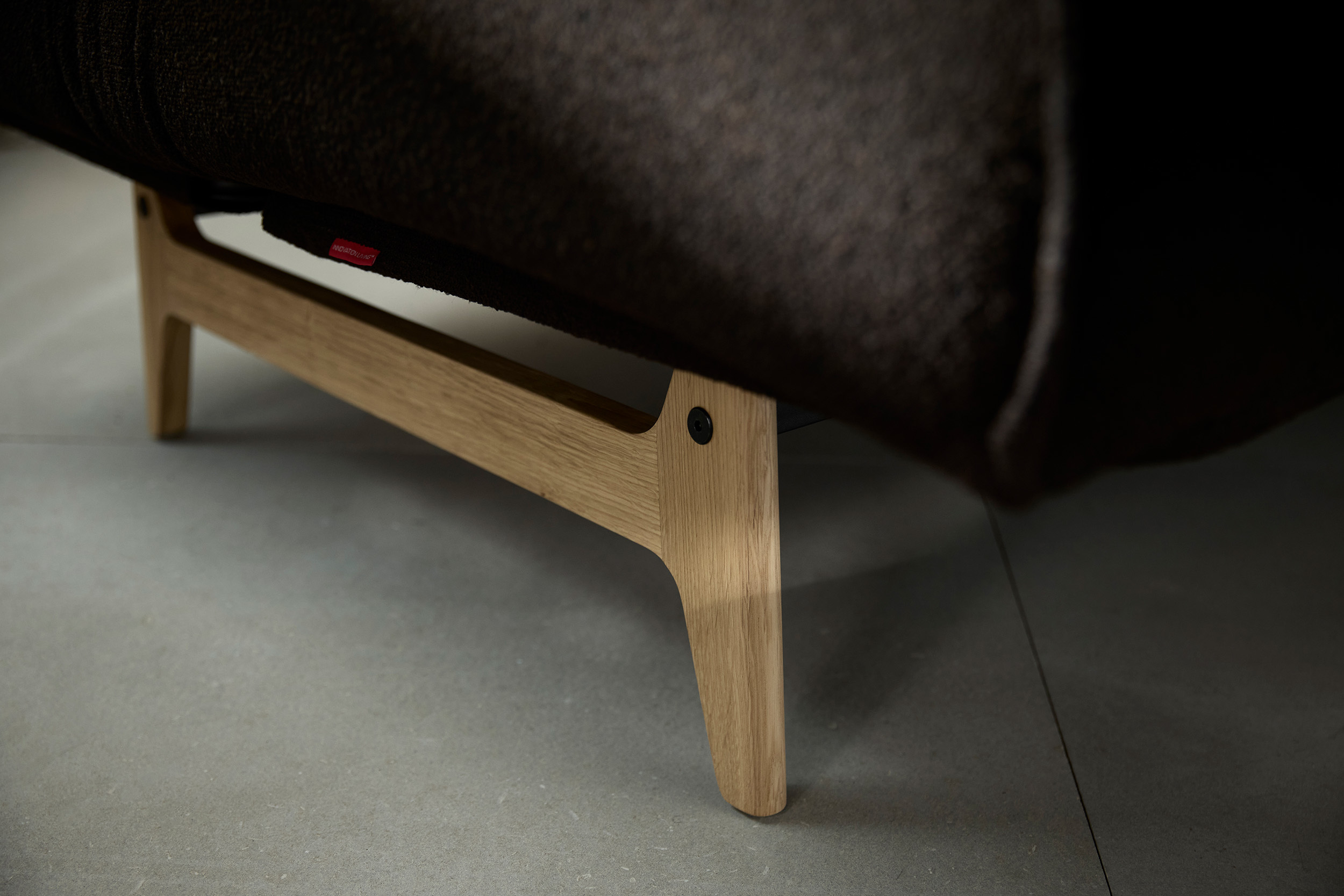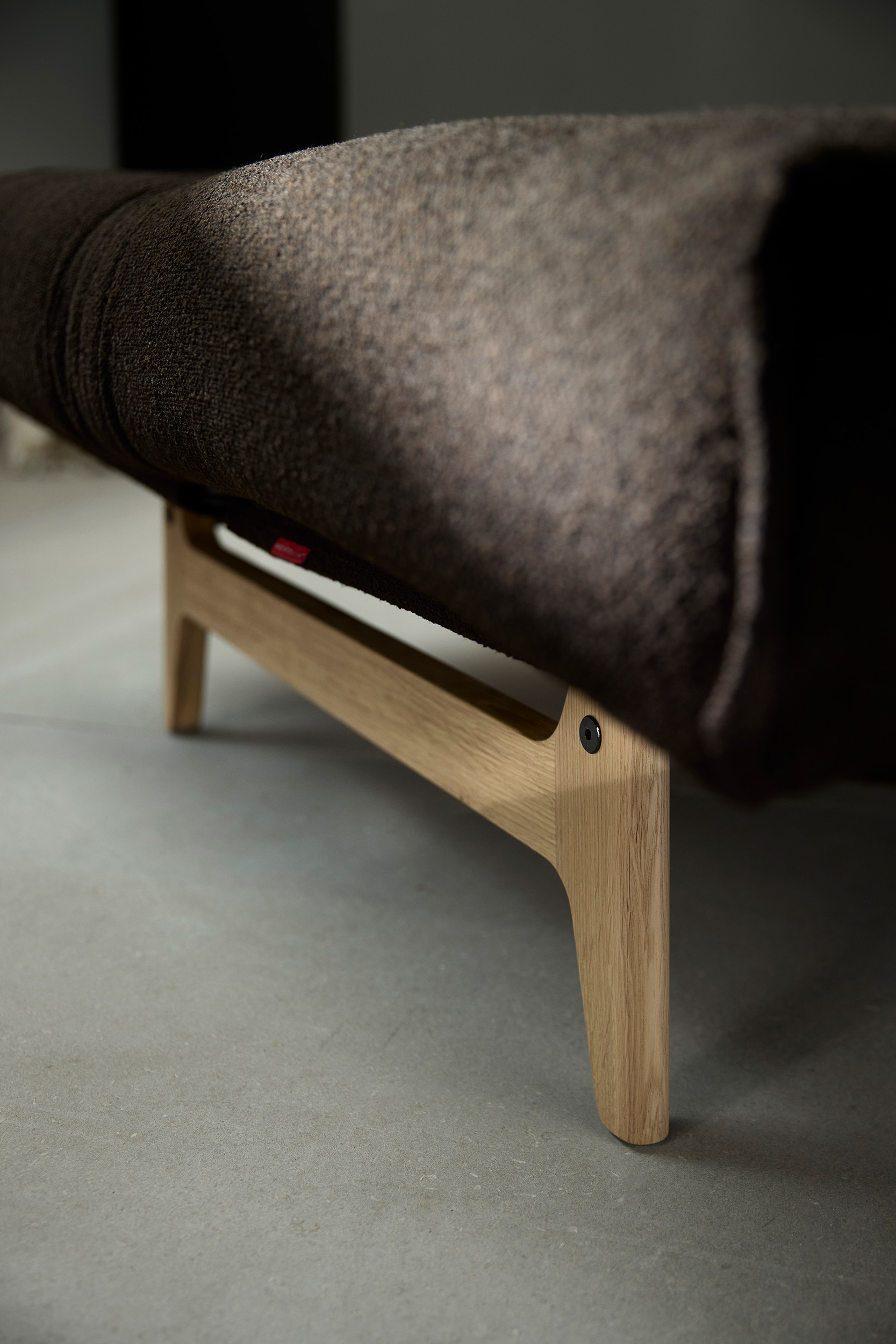 A versatile sofa bed design with a Nordic attitude amplified by lacquered oak legs and high functionality that is crafted for longevity..