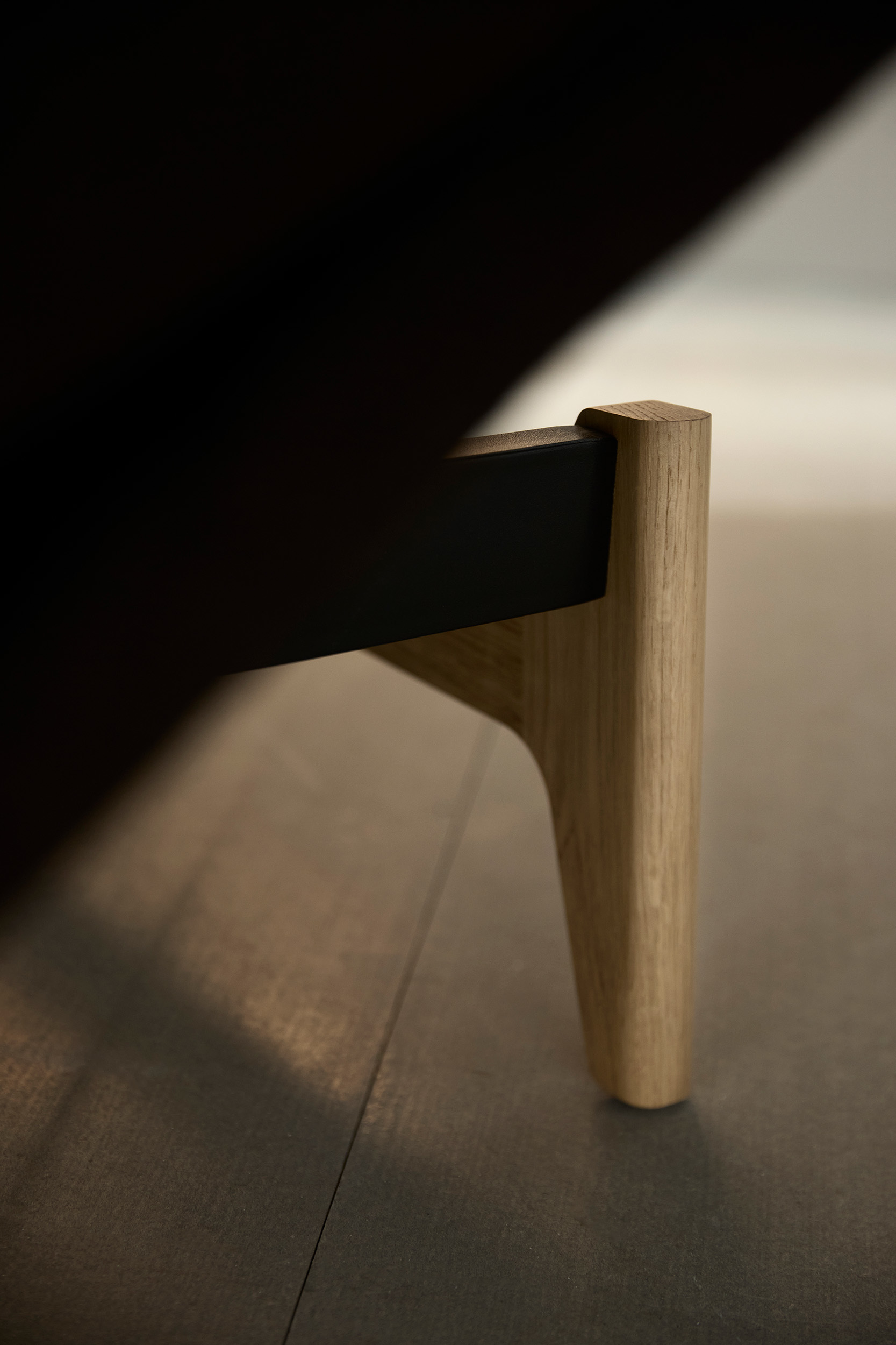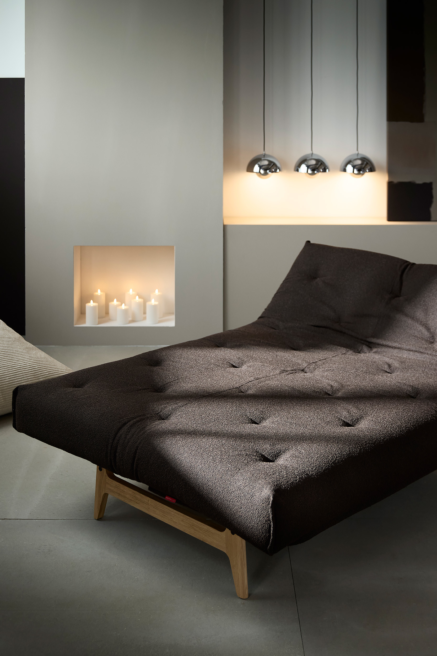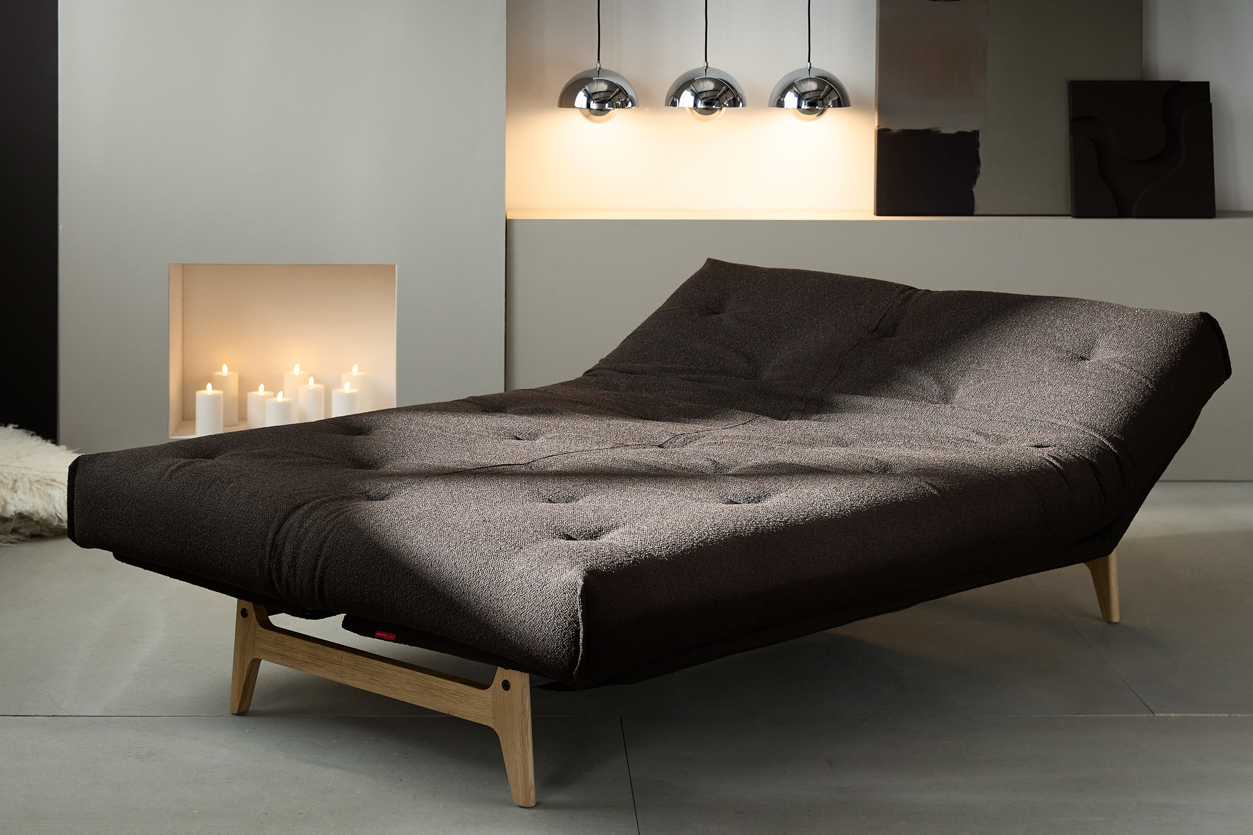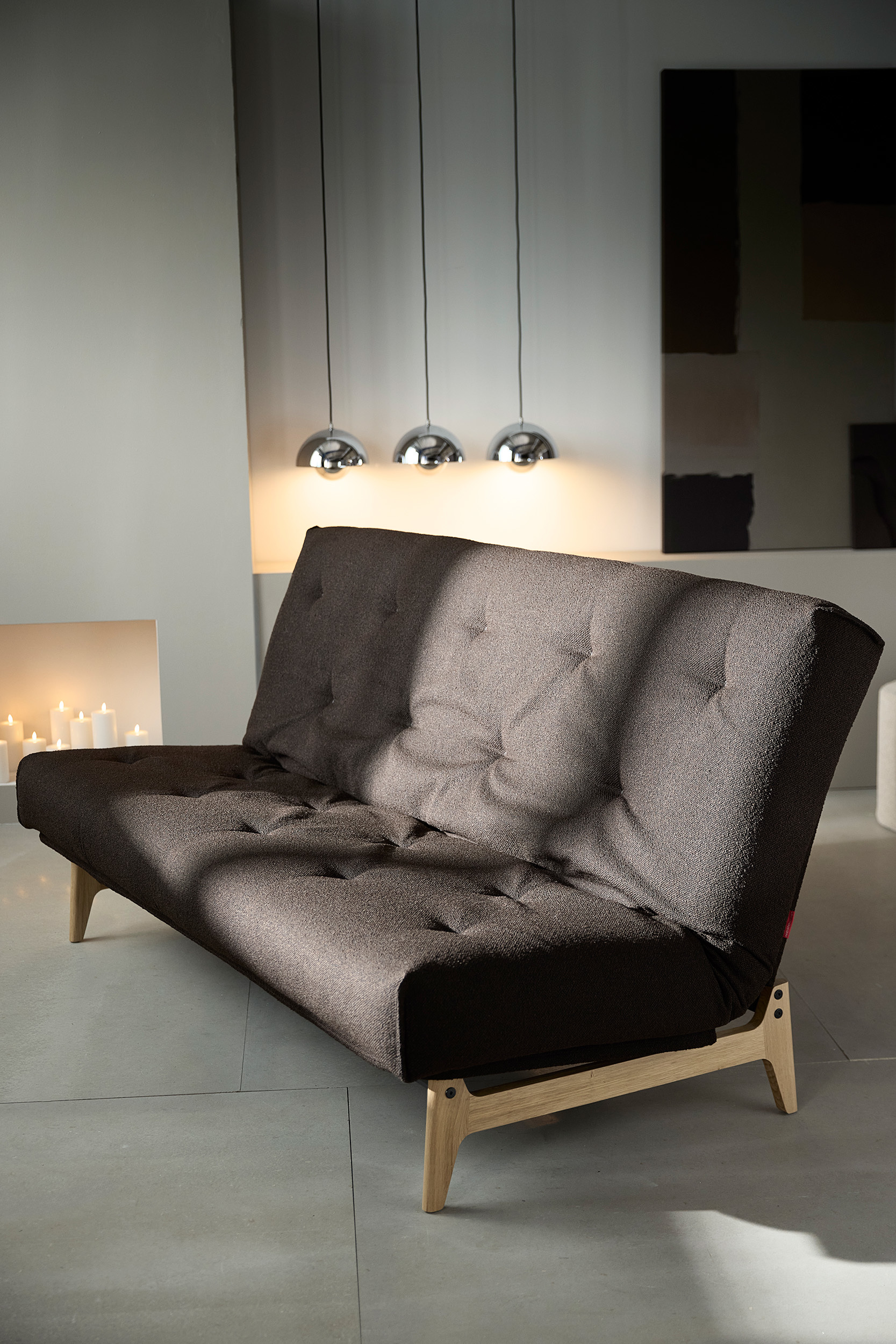A versatile sofa bed design with a Nordic attitude amplified by lacquered oak legs and high functionality that is crafted for longevity..