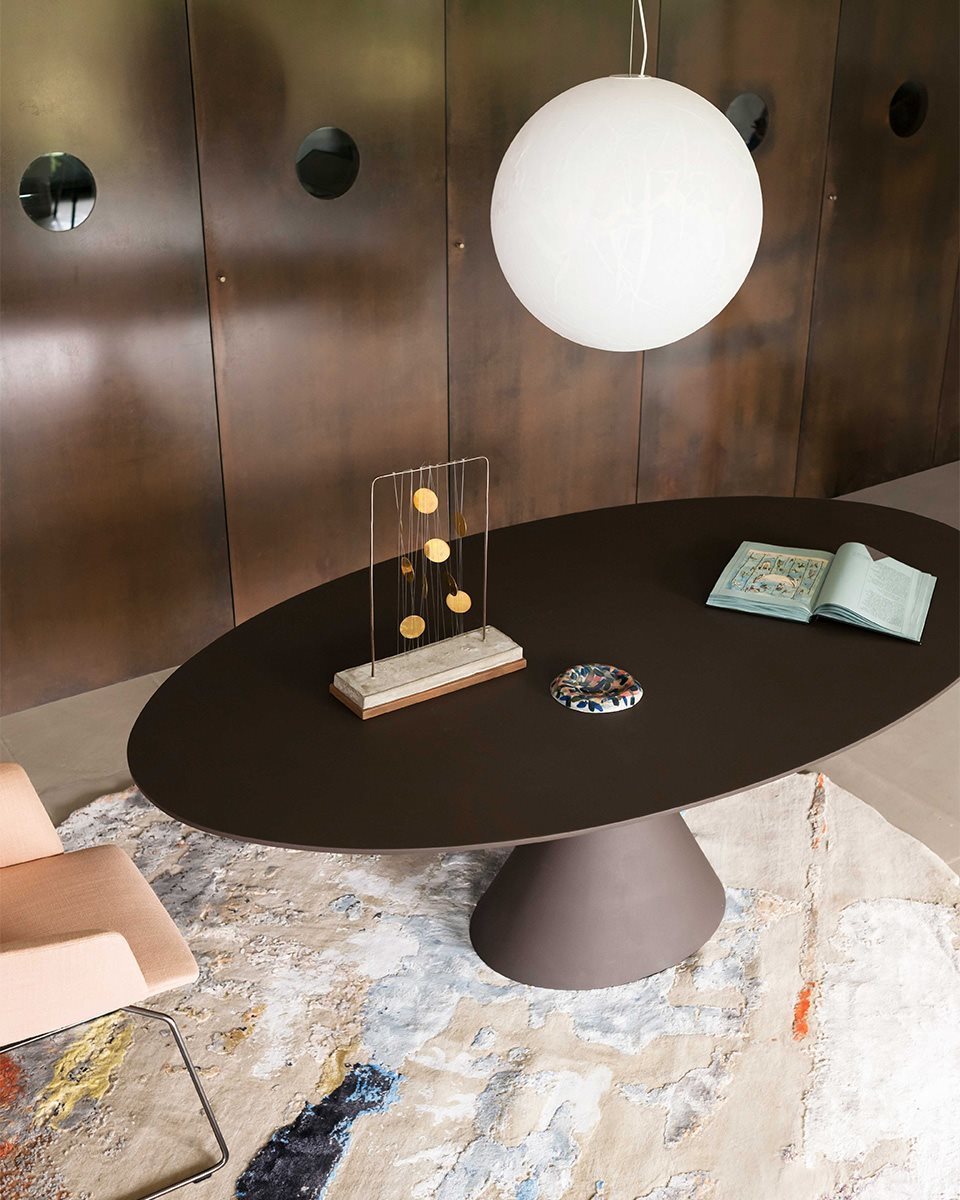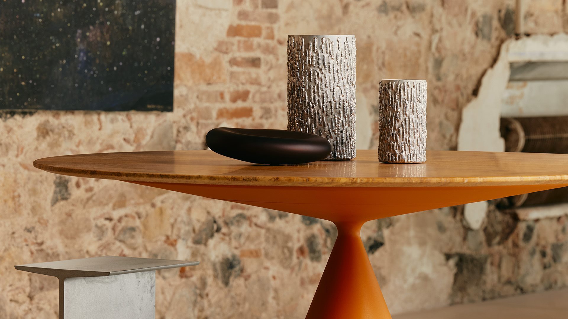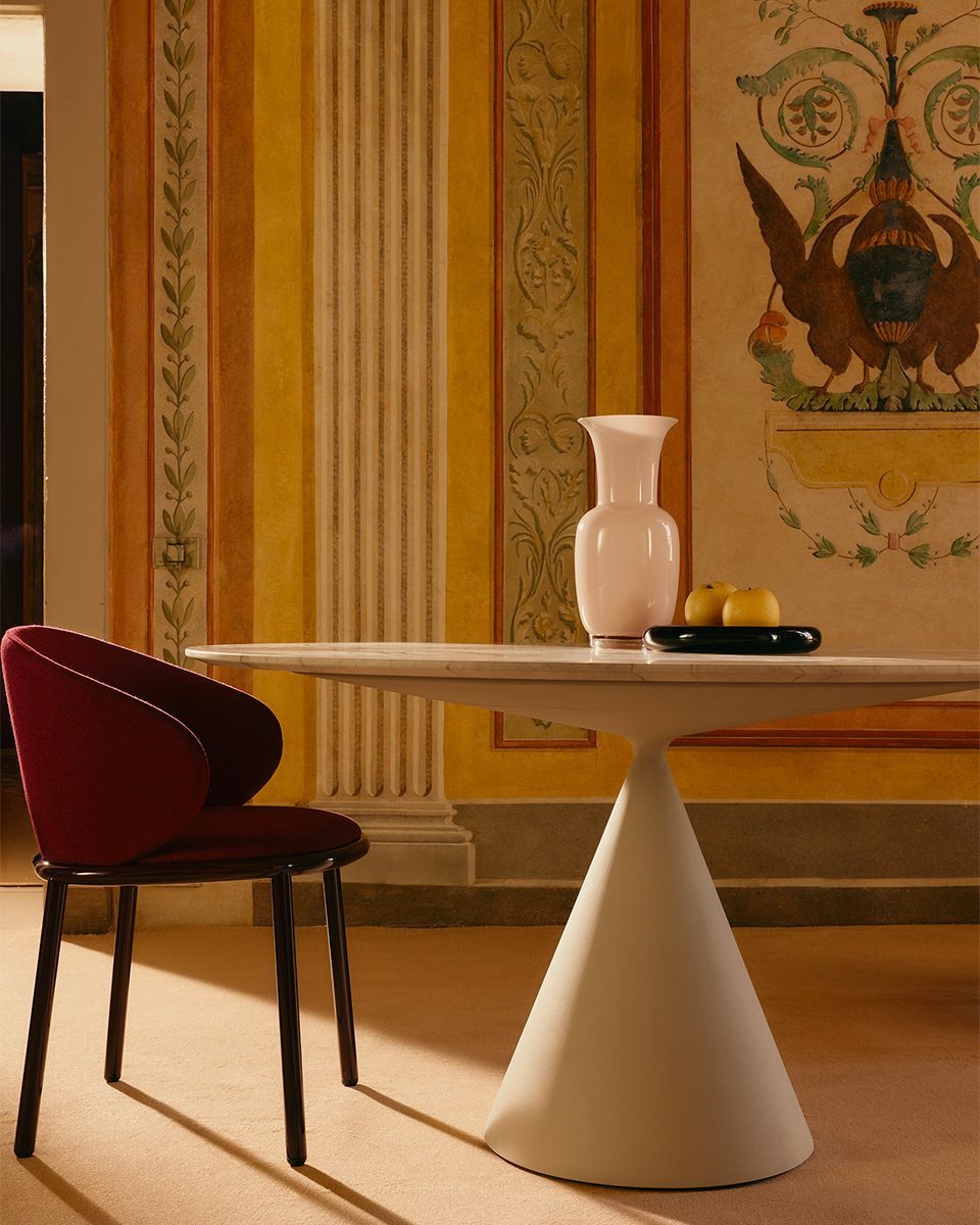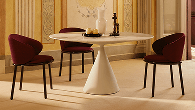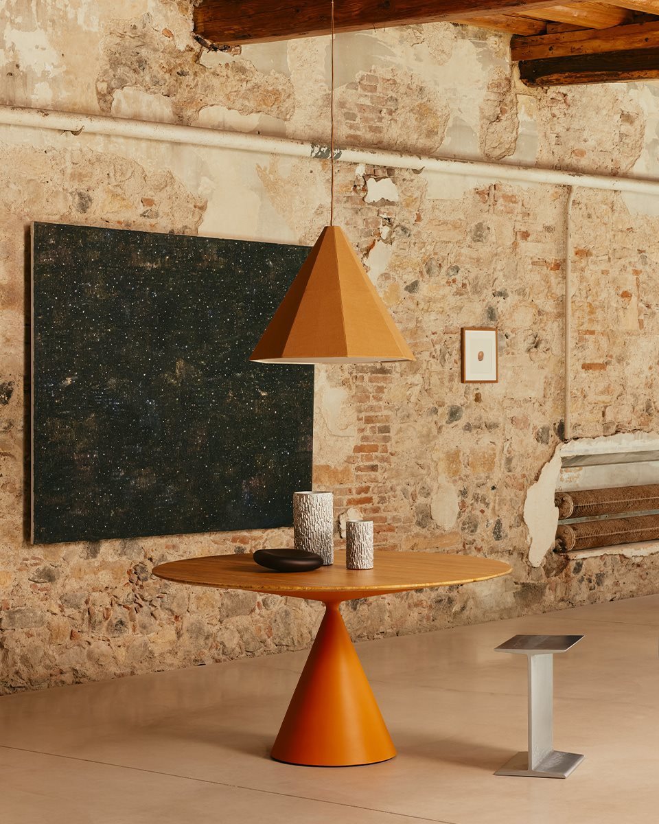 Clay is a sculptural table, a synthesis of beauty and harmonious proportions. Presented at the Salone del Mobile 2015 and winner of prestigious international awards — Iconic Design Award 2015, Good Design Award 2016, and Red Dot Award 2016 in the Product Design category — Clay is born from the encounter of two essential volumes, the top and the base, balanced in a bold and minimal point of contact that transforms stability into a gesture of pure elegance.
