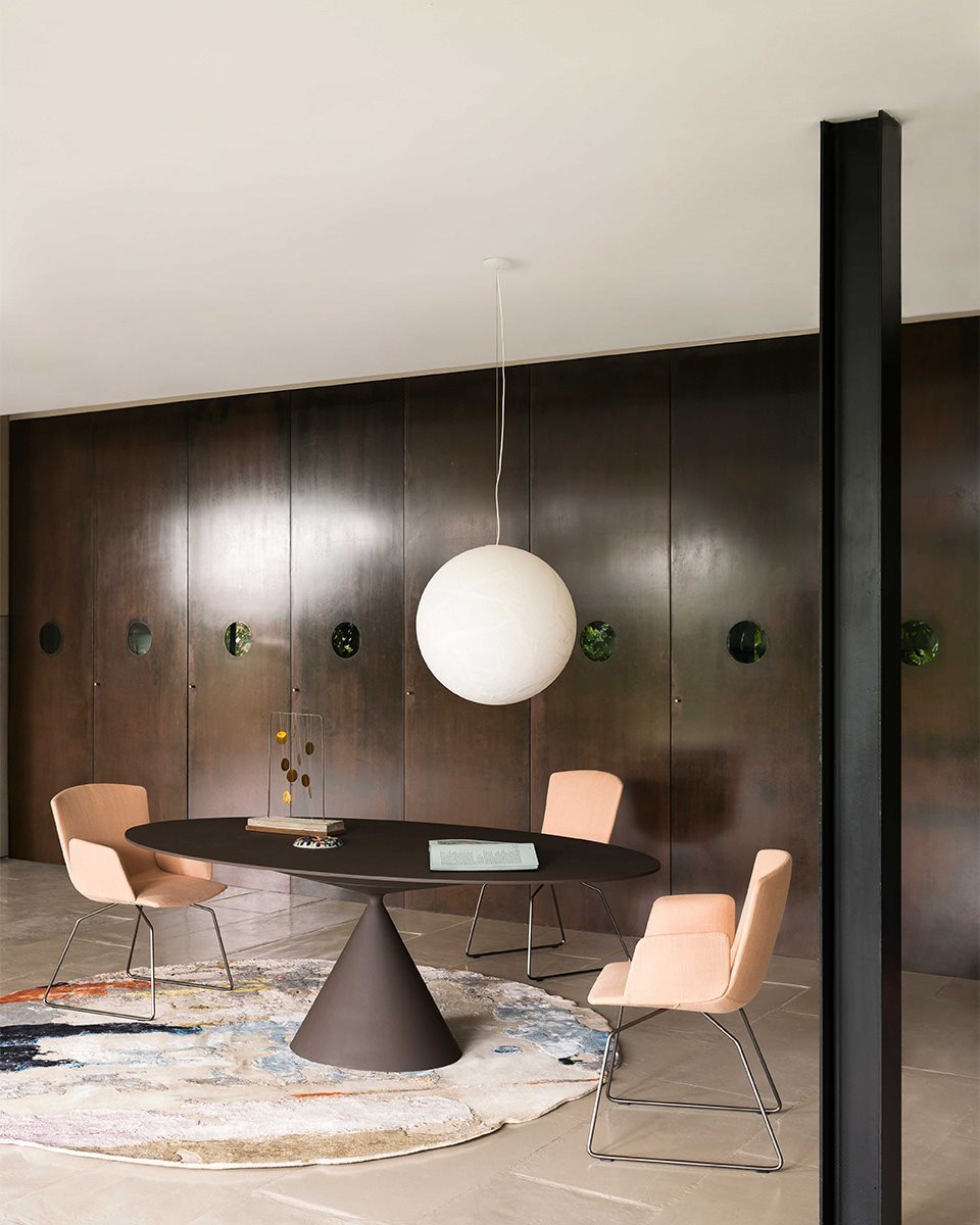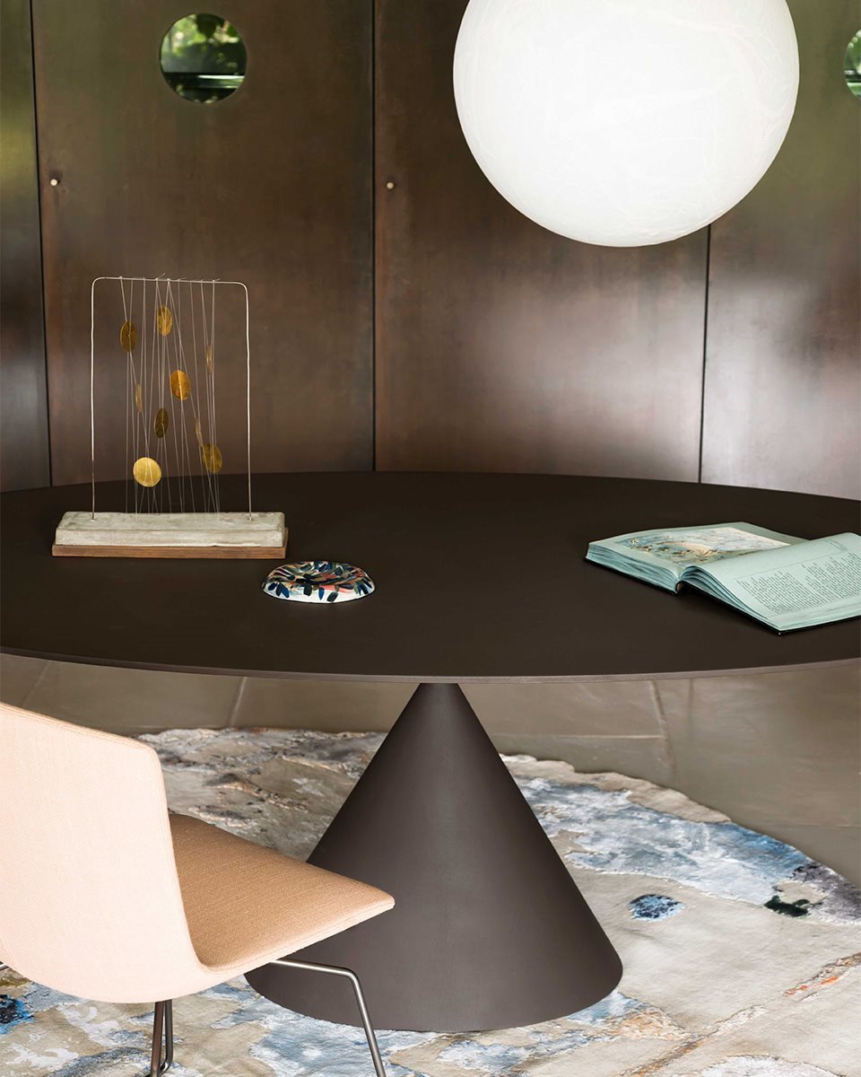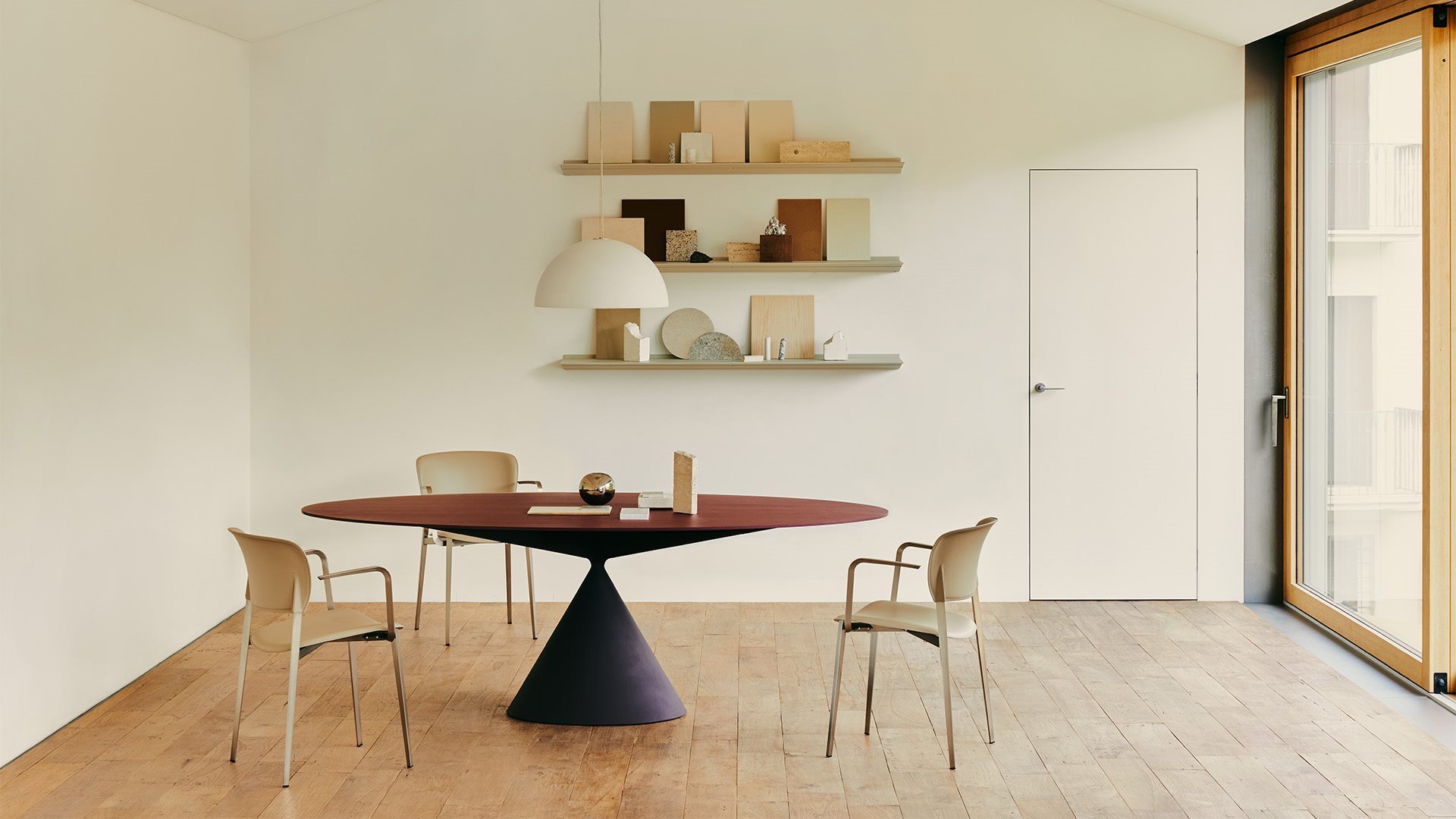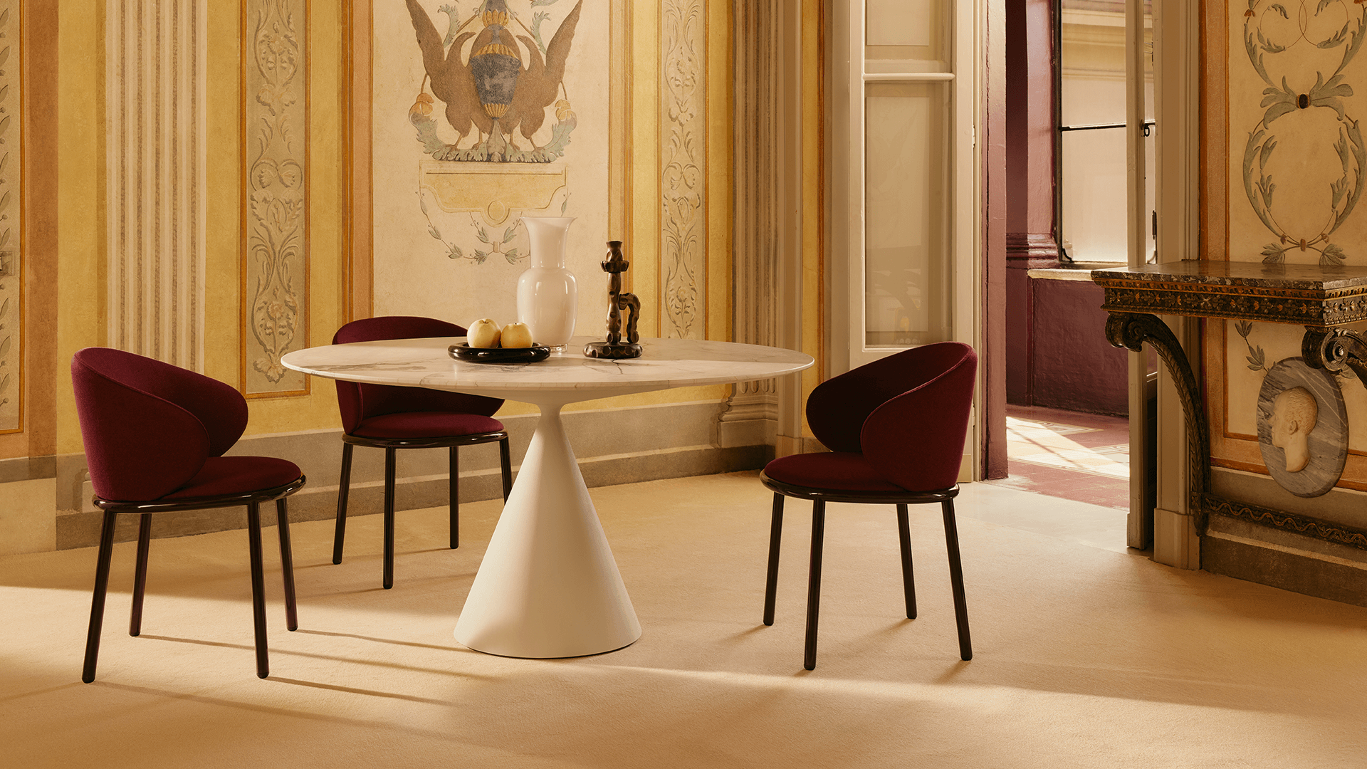 Clay is a sculptural table, a synthesis of beauty and harmonious proportions. Presented at the Salone del Mobile 2015 and winner of prestigious international awards — Iconic Design Award 2015, Good Design Award 2016, and Red Dot Award 2016 in the Product Design category — Clay is born from the encounter of two essential volumes, the top and the base, balanced in a bold and minimal point of contact that transforms stability into a gesture of pure elegance.