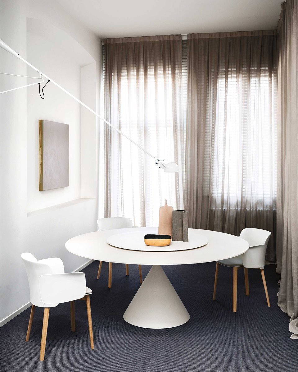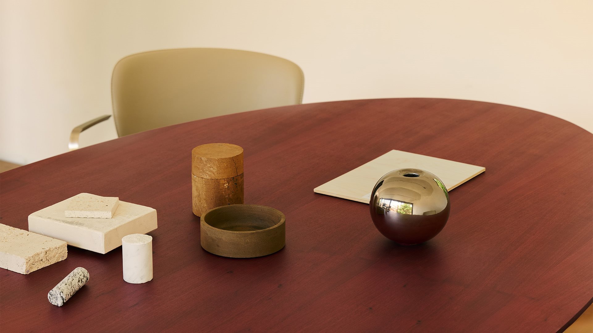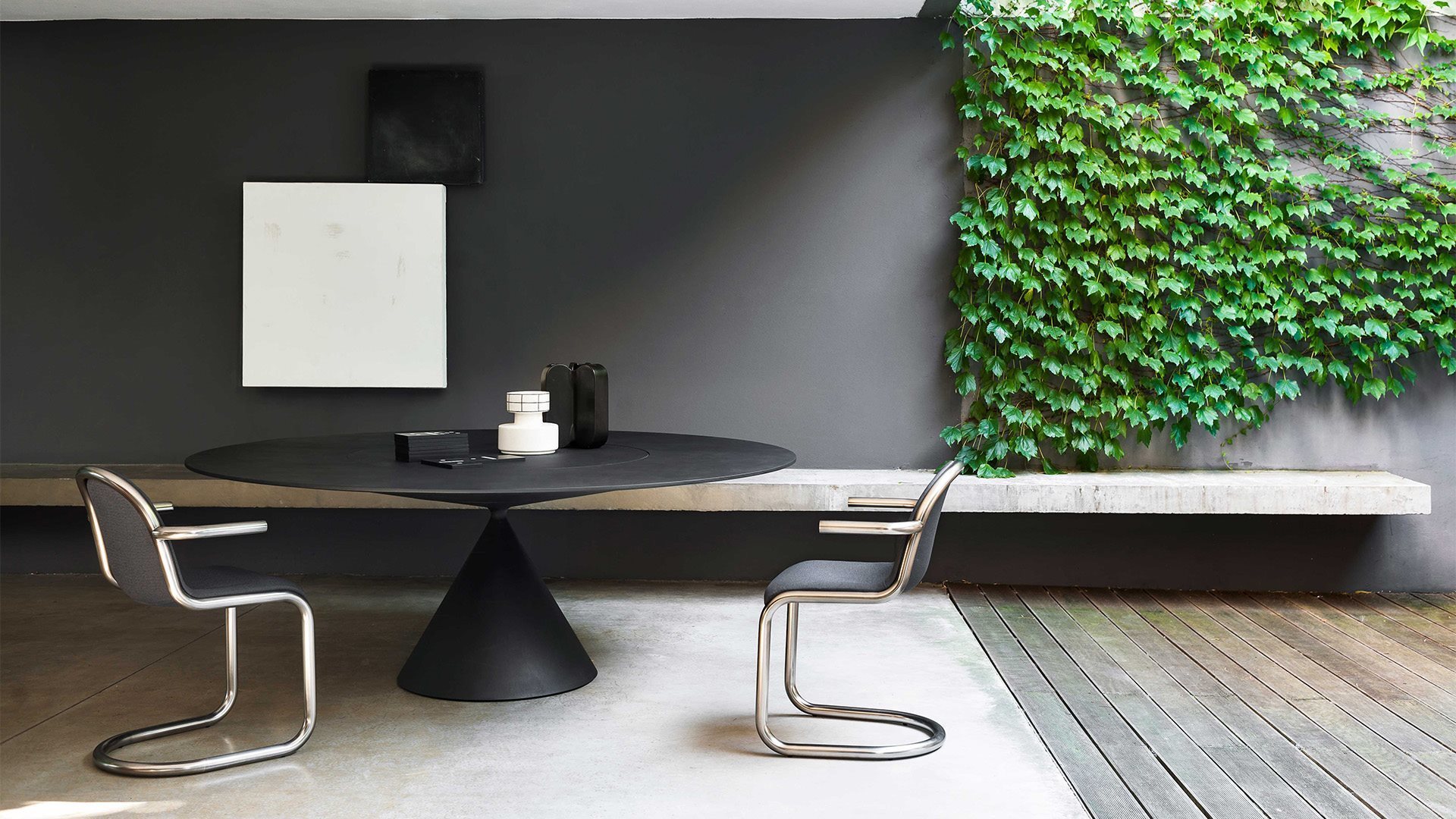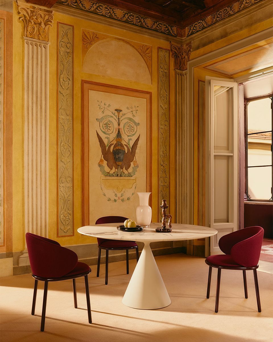 Clay is a sculptural table, a synthesis of beauty and harmonious proportions. Presented at the Salone del Mobile 2015 and winner of prestigious international awards — Iconic Design Award 2015, Good Design Award 2016, and Red Dot Award 2016 in the Product Design category — Clay is born from the encounter of two essential volumes, the top and the base, balanced in a bold and minimal point of contact that transforms stability into a gesture of pure elegance.