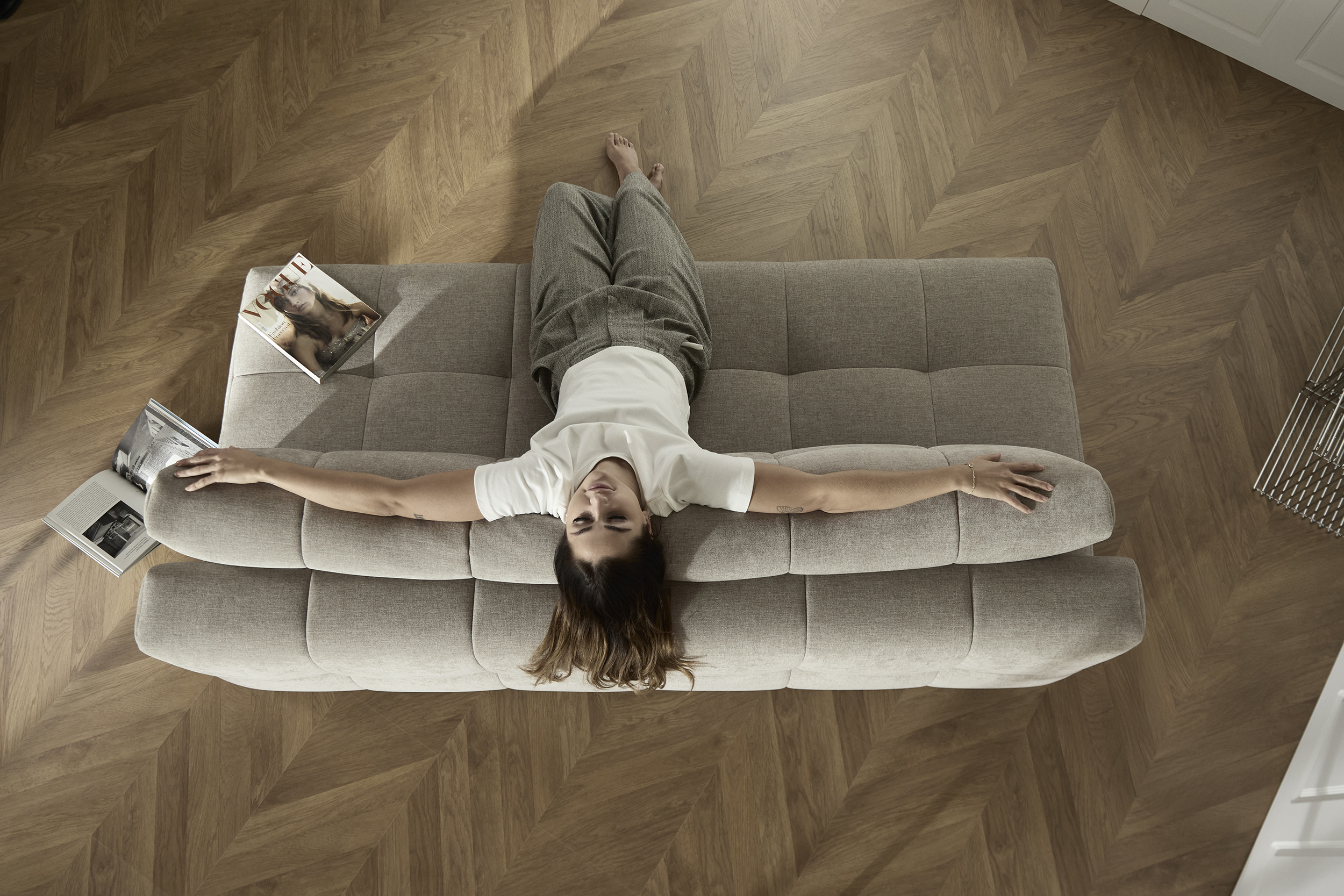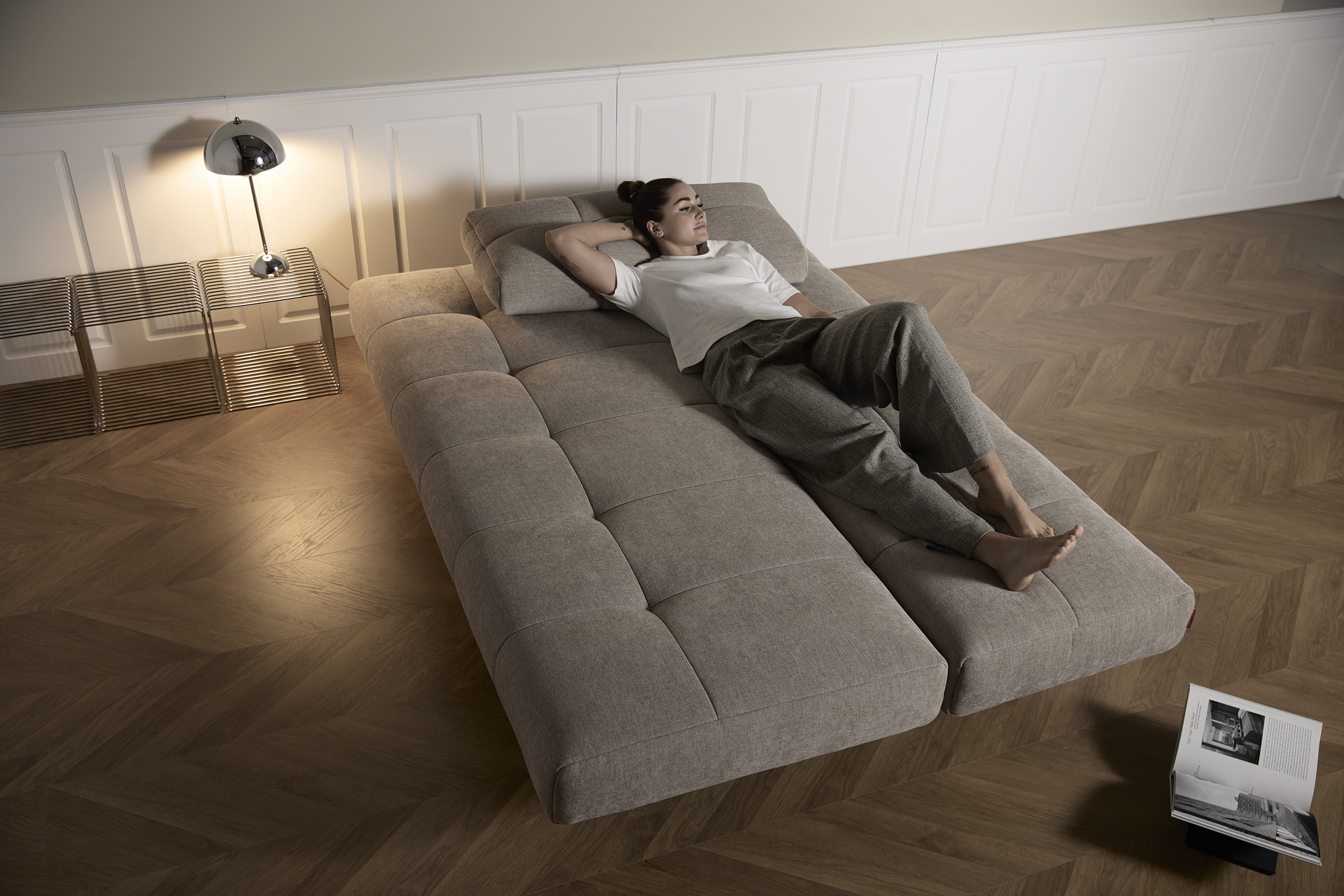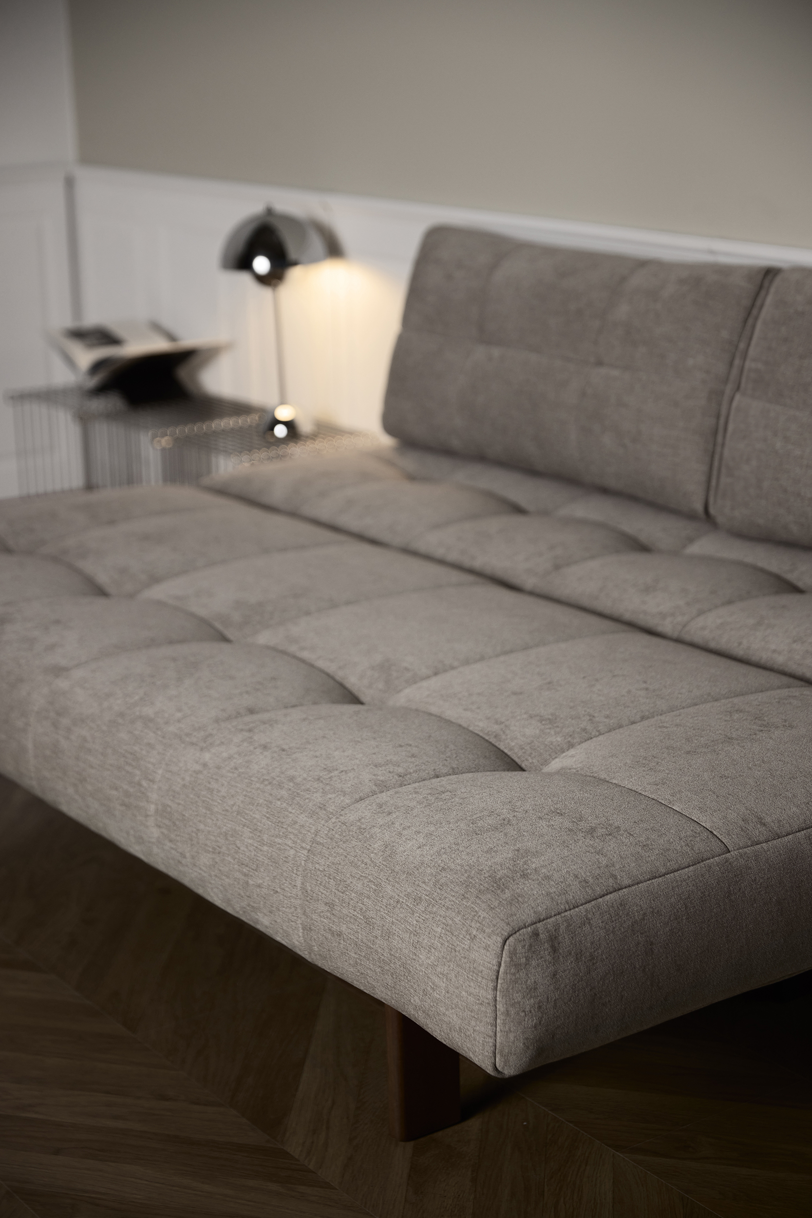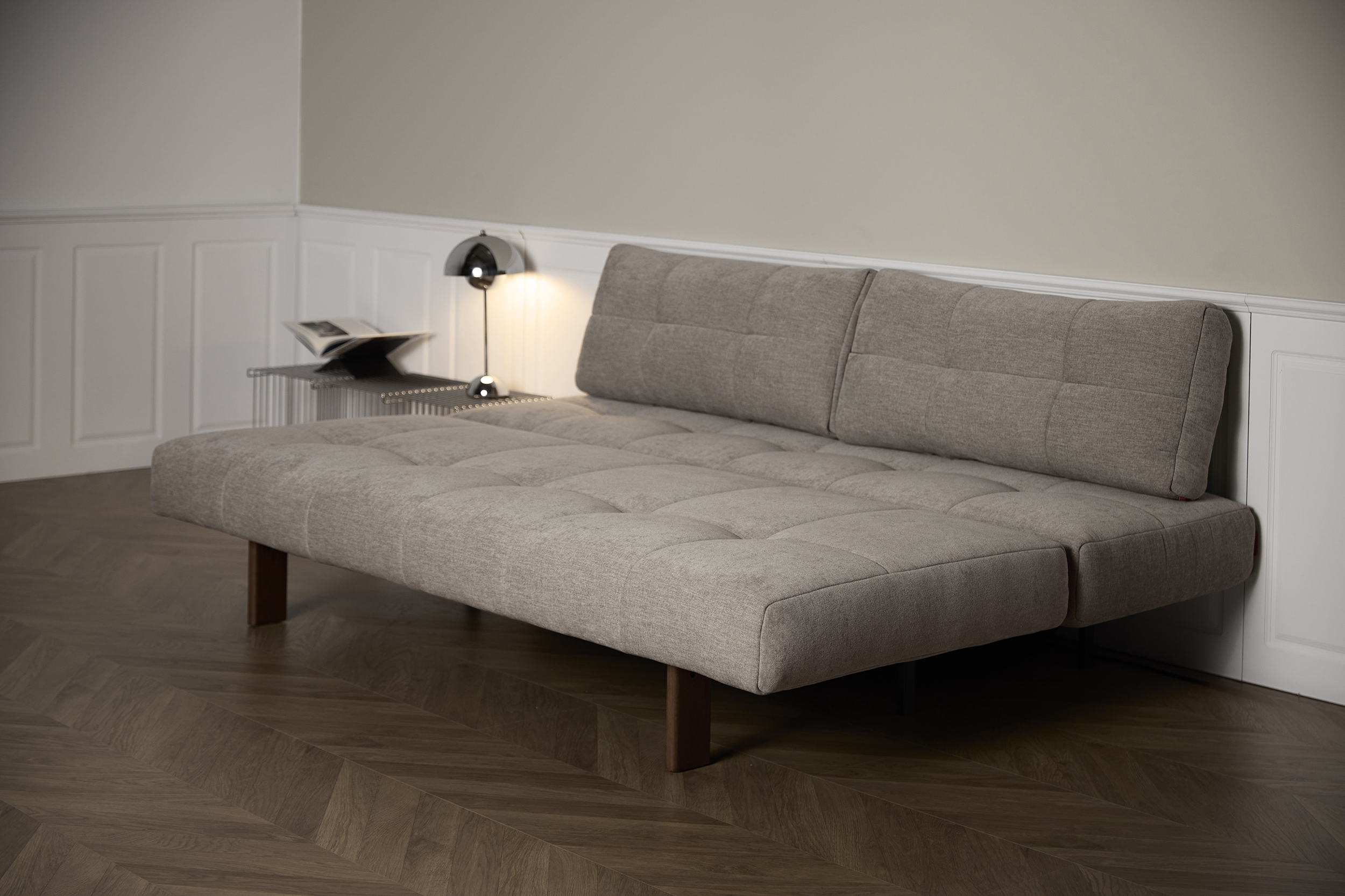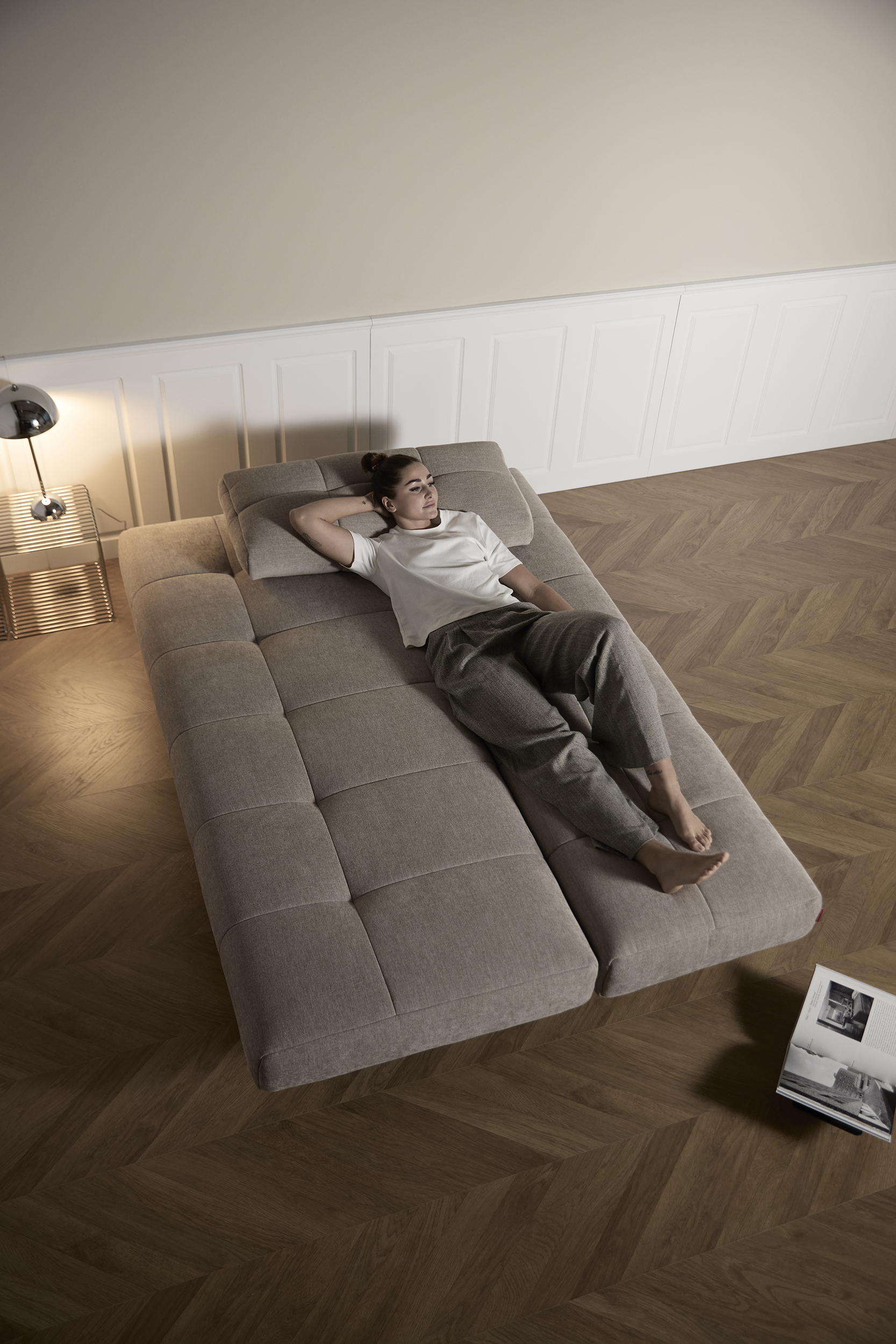 The distinctive soft quilted character of the upholstery, in combination with the simple plank leg defines the unique character of Eilis. Within a matter of seconds, you can slide out the sofa and flit down the backrest, and you are rewarded with a double bed measuring 140 x 200 cm. The comfort is complete with the Pocket Spring breathable mattress, which provides a soft top support.