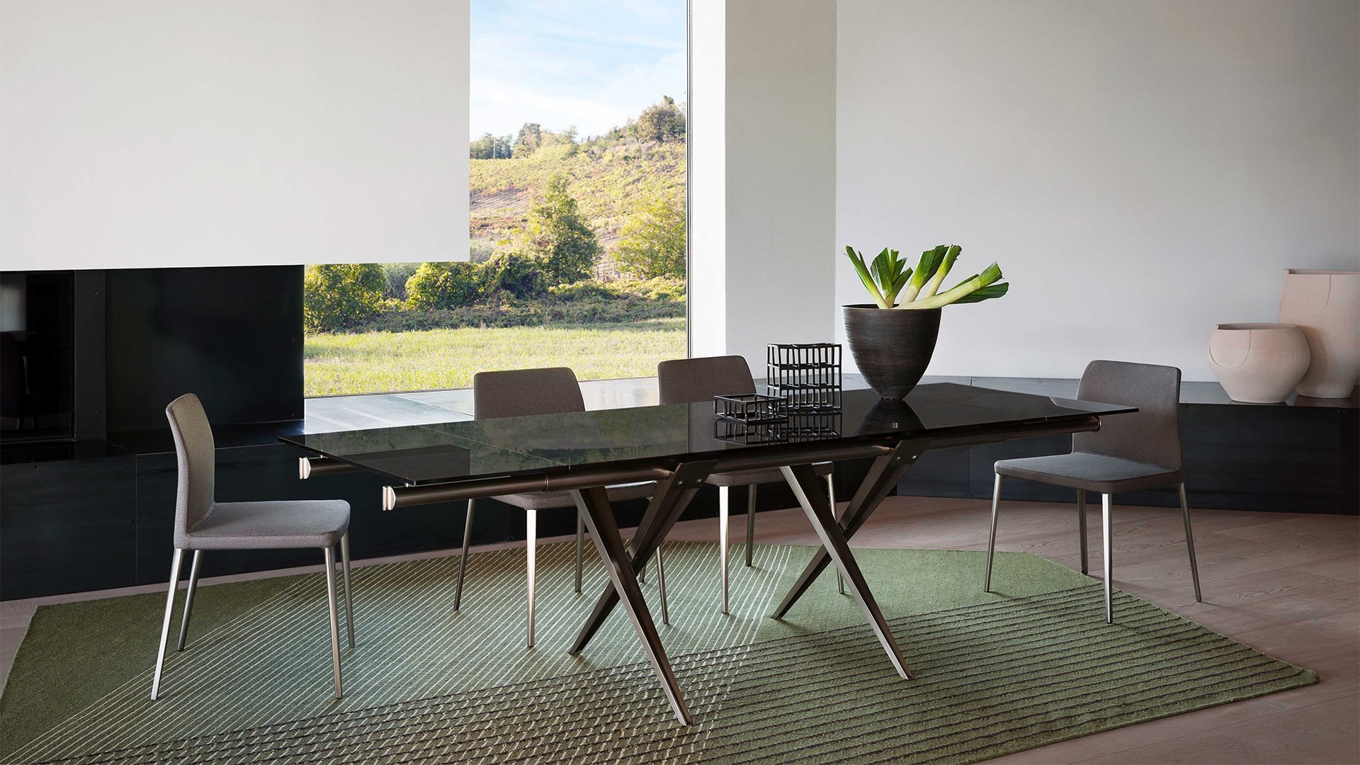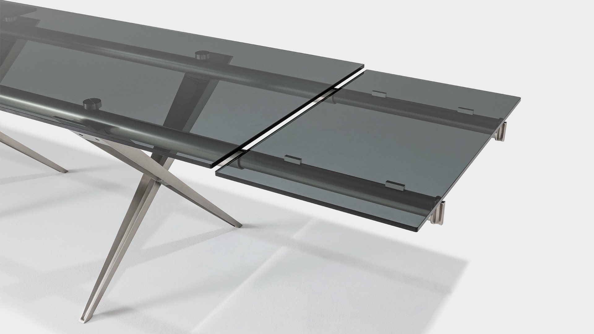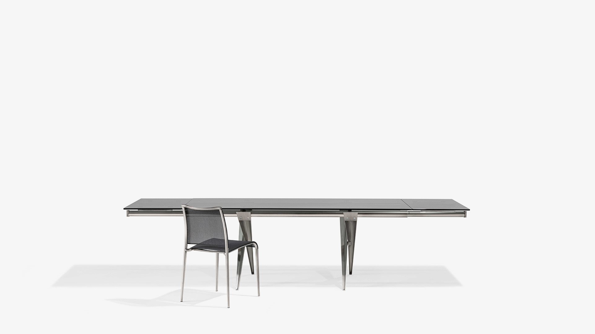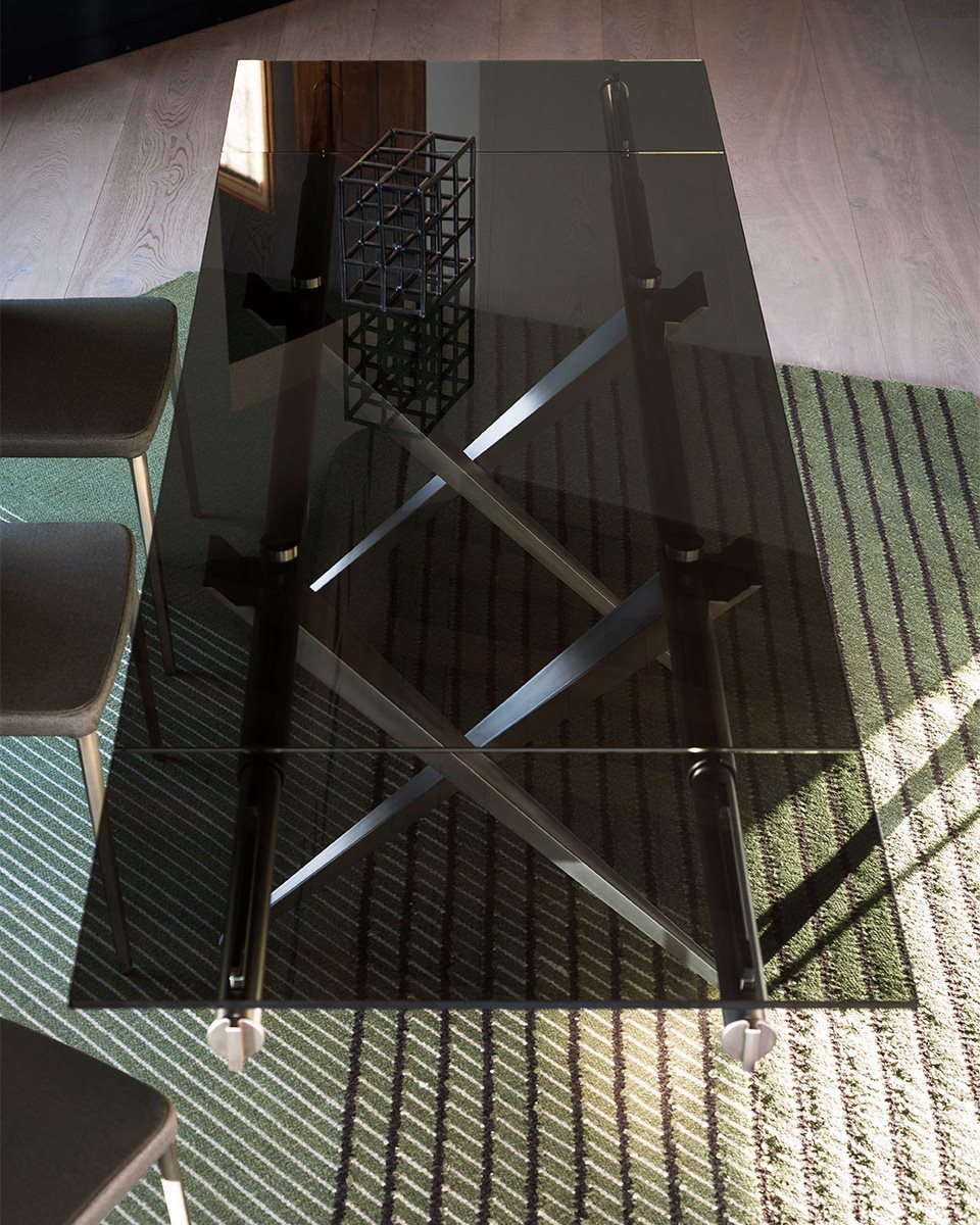 Tender is the progenitor of Desalto extenting tables. After more than twenty-five years it is still an unequalled example of design; harmonious union of rationality, genius and formal expression.
