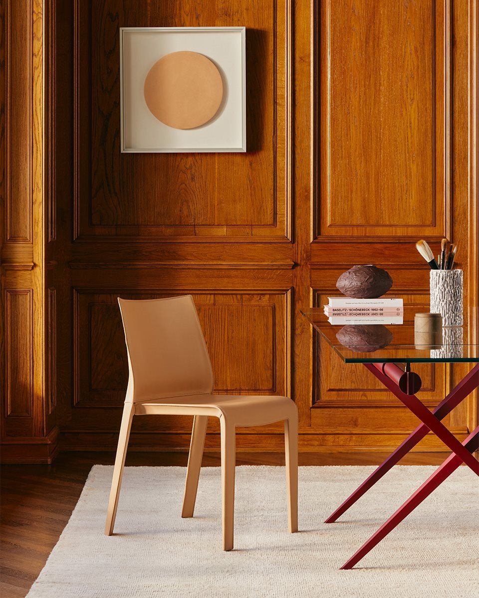The introduction of color in Tender’s lacquered frame completely transforms the perception of the product. The new finishes bring freshness and modernity, updating the historic design and giving the table a new life. The tones highlight the essential forms, enhance the lightness of the glass top, and make Tender an even more contemporary and distinctive design object.